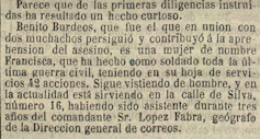 Los antecedentes y las circunstancias del crimen han merecido la atención de varios autores. Lo que aquí importa es que en 1862 y 1863 nuestra protagonista tuvo que asistir y declarar en el juicio, lo que suscitó de nuevo la cuestión de su sexo, máxime considerando que en alguna sesión exhibió “sus múltiples condecoraciones de guerra”.Las siguientes noticias sobre las vicisitudes de nuestro personaje se circunscriben prácticamente a su participación en la guerra de África (tenía ya 50 años) y al suceso siguiente. En 1861 vivía en Madrid, donde pasó por hombre y trabajó como criado de una señora, cuya prima fue asesinada el 29 de julio cuando iba con sus dos hijas, sin que quien las acompañaba (Francisca/Benito) pudiera impedirlo.