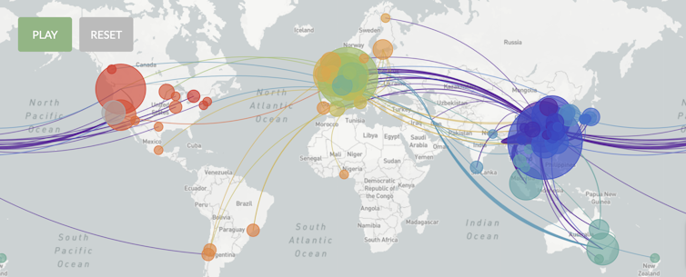 Esto se realiza gracias a la colaboración desinteresada de muchos científicos, que comparten las secuencias que obtienen en una plataforma establecida previamente para la vigilancia de la gripe (GISAID, siglas de Global Initiative on Sharing All Influenza Data. Los datos genómicos en bruto son imprescindibles, pero aún más su análisis en tiempo real, que es posible gracias a un programa que aprovecha los datos de GISAID para establecer las rutas de transmisión del virus.