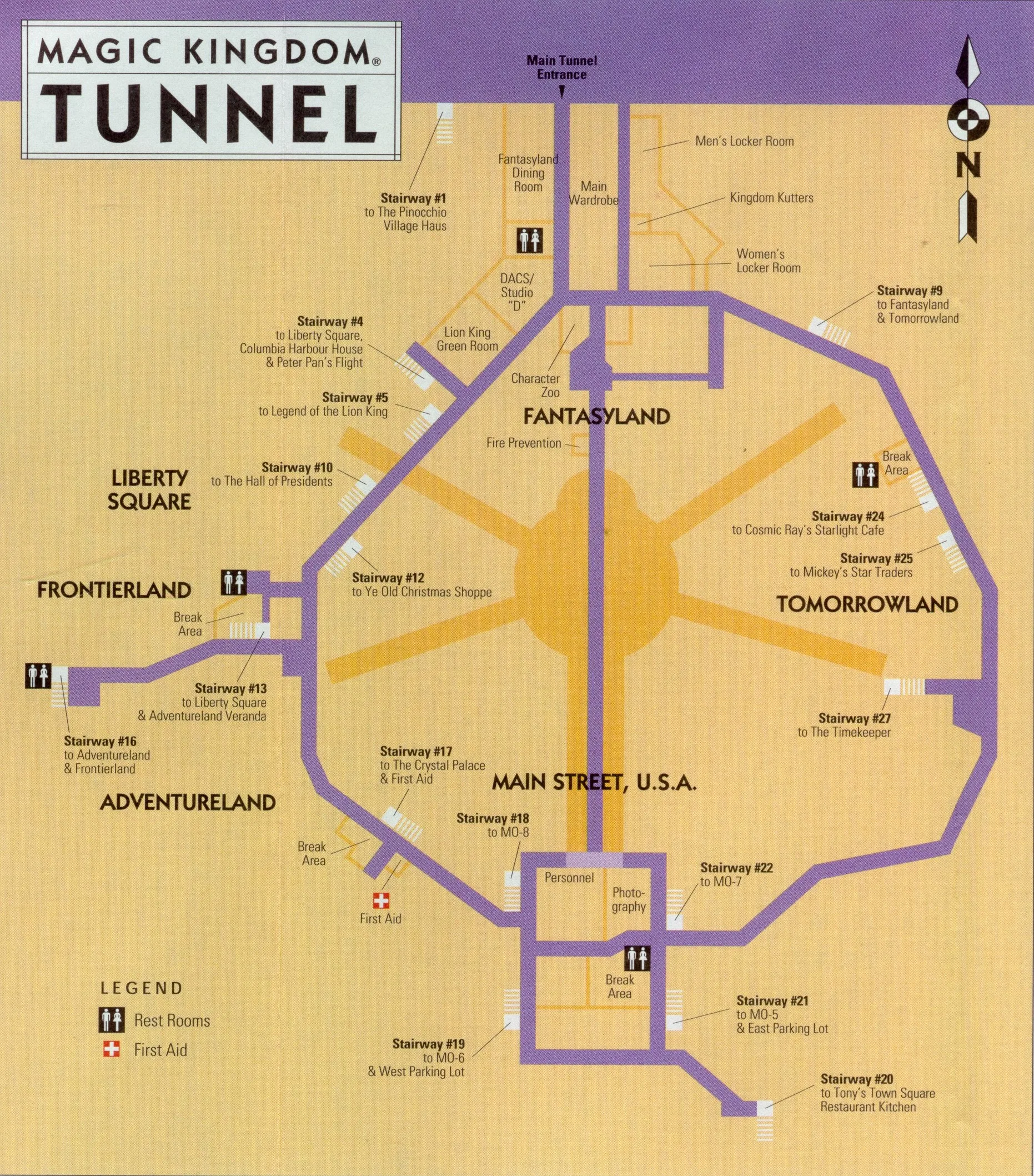 Cuando se diseñó el Magic Kingdom en Florida, se implementaron los utilidors para mantener las operaciones detrás de escena y preservar la ilusión.