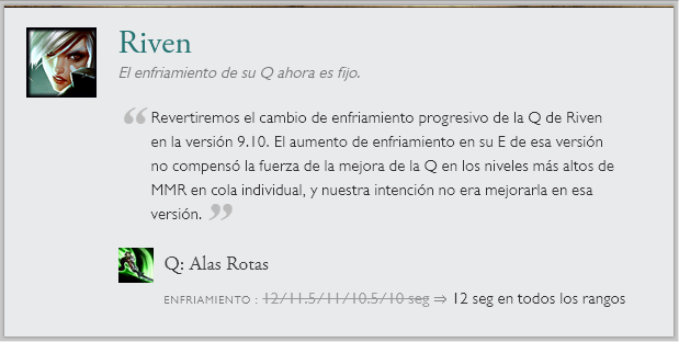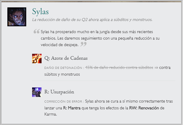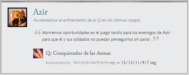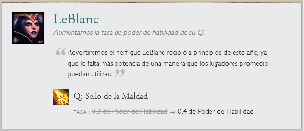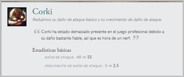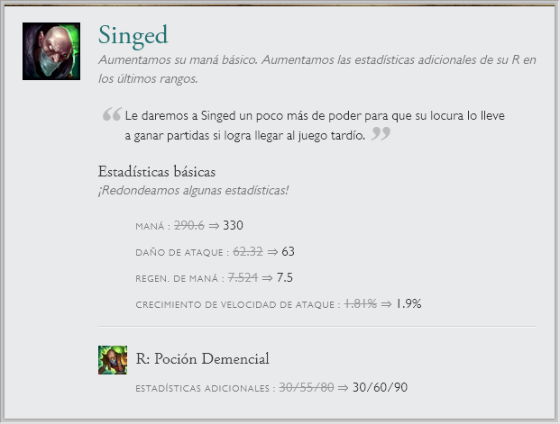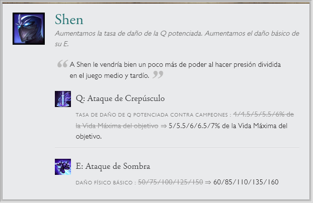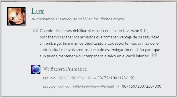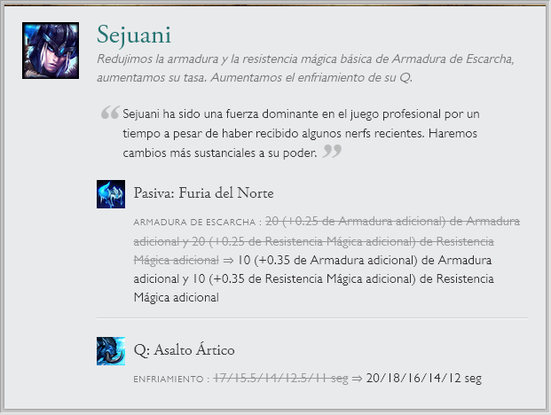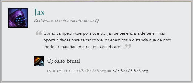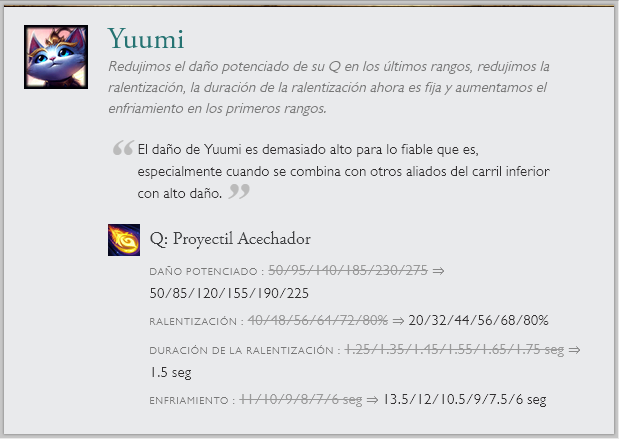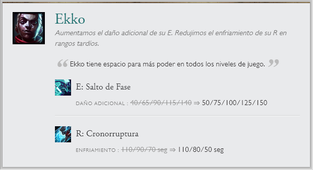 También hay cambios a una runa en específico "Entrega de galletas", la que recibirá un nerf por el gran sustento que generaba. Junto a cambios de balance en el modo de juego ARAM. Sin olvidar el nuevo sistema en clasificatorias de elo alto y las recompensas de Honor 5.