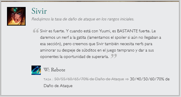 El parche 9.16 de League of Legends ya está aquí, con nerfs a campeones como Ezreal, Yuumi, Tham Kench y Sivir, que se encontraban en los personajes más utilizados de la versión anterior. Por otro lado, algunos campeones recibirán mejoras para incentivar el uso de estos campeones en el juego, como por ejemplo: Fiora, Jax, Syndra, Shen, entre otros.