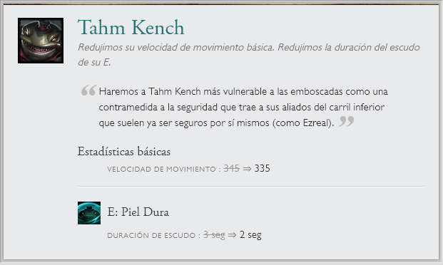 También hay cambios a una runa en específico "Entrega de galletas", la que recibirá un nerf por el gran sustento que generaba. Junto a cambios de balance en el modo de juego ARAM. Sin olvidar el nuevo sistema en clasificatorias de elo alto y las recompensas de Honor 5.